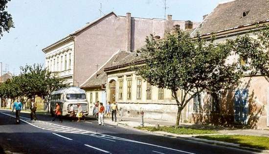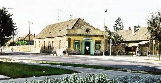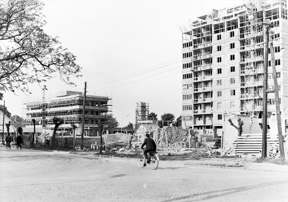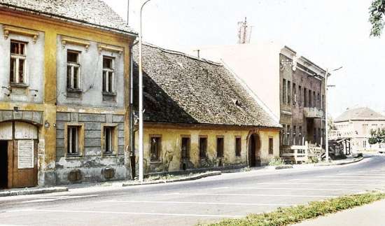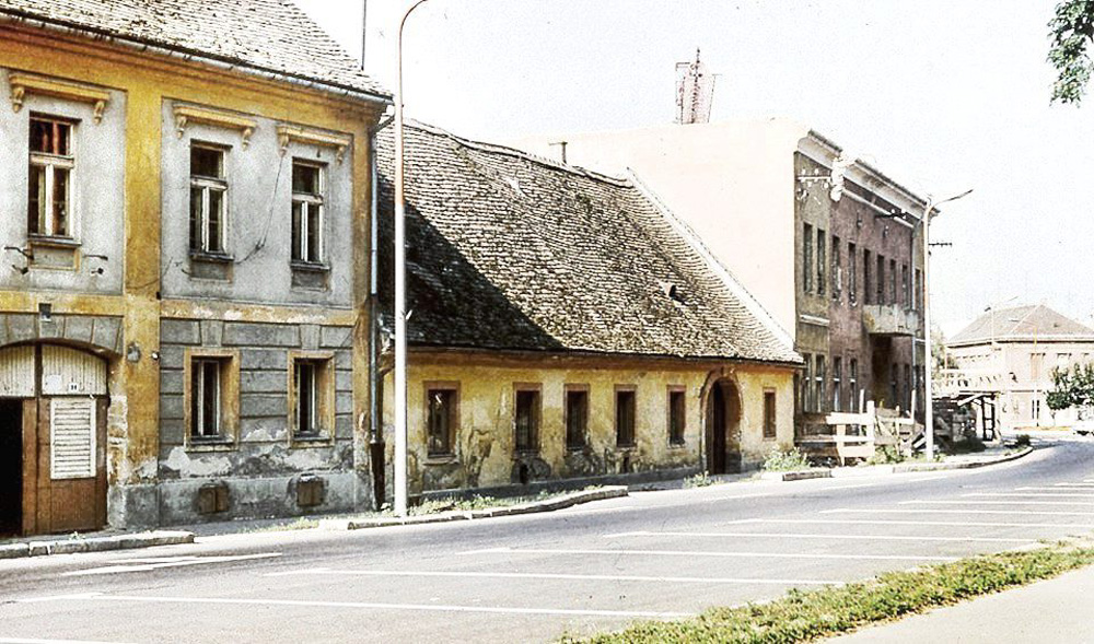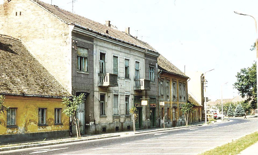 (A fotó a mai Platán soron [az új városrész első utcáját 1960-ban kezdték kialakítani] készült. A Sebestyén-ház déli szomszédjait már lebontották.)