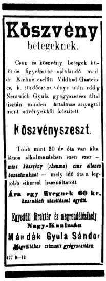 Frim Jakab és egy hirdetése a Vasárnapi Ujságból (1891)