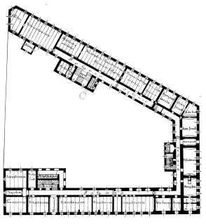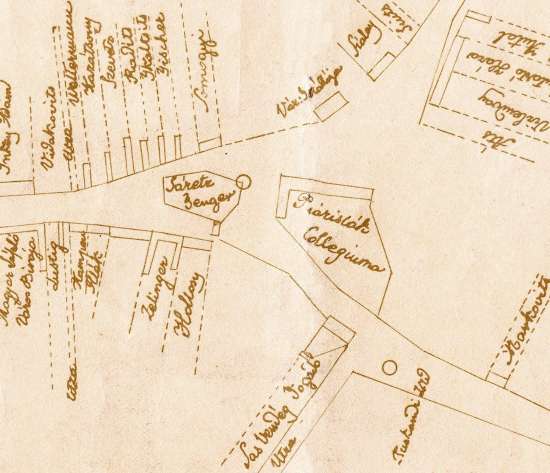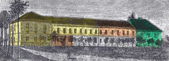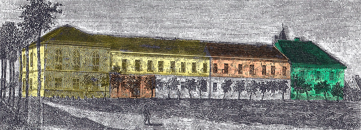 (Színtelen a hajdani laktanya; zöld az 1782-es, narancs az 1822-es, sárga az 1868-as rész.)