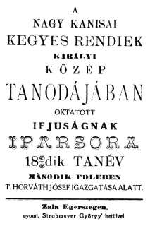 1835-ben léptek először nyilvánosság elé az iskola színjátszó tanulói a kanizsai zeneegyesület társaságában. Egy magyar vígjátékot adtak elő, a bevétellel Bernhard Gáspár városbíró kezdeményezését támogatták. Bernhard gyűjtést indított a városi közkórház (Ispita) létrehozására, „egyszersmind az elaggott, vagyontalan polgárok segélyezésére”.