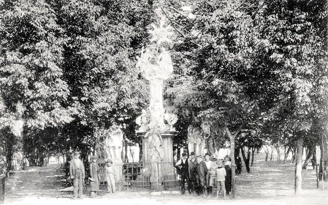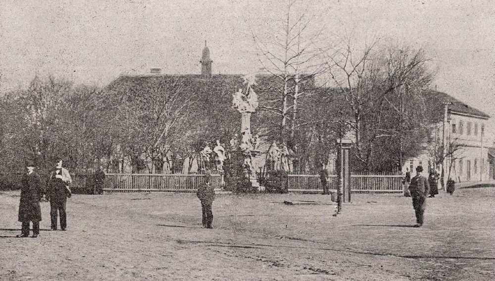 •1869-ben az Erzsébet térről eltávolított Szentháromság-szobrot itt, a gimnáziumtól nyugatra állították fel.