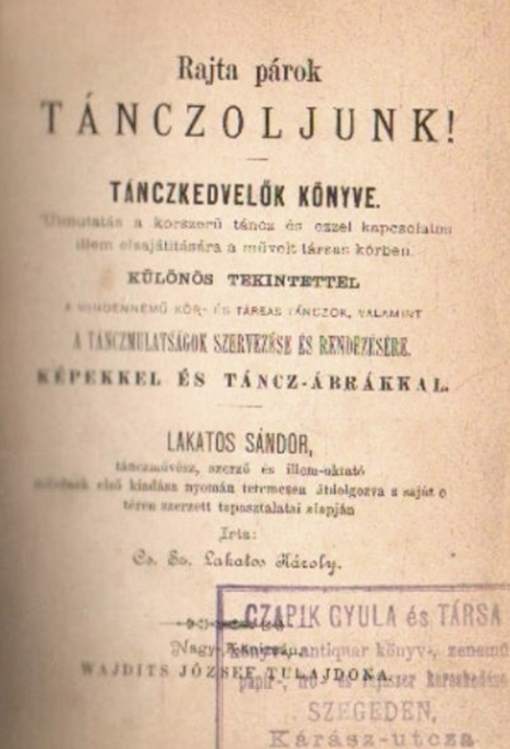 Két szakkönyvet is megjelentetett Wajditsnál 1869-ben, illetve 1871-ben. A másodikban, „A magyar táncról. Rajta párok táncoljunk!” című kötetben megpróbálta a magyar tánc mozdulatkincsét feltérképezni. Harminckét figurát figyelt meg. Ezek még a 20. század egészében is visszaköszöntek a táncoktatásában, sőt bekerültek a paraszttáncokba.
