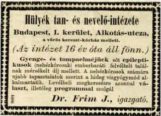 Frim húsz évesen kapcsolatba került az egyik szabadkőműves páhollyal, akik aztán fedezték külföldi tanulmányútja költségeit. Amikor hazatért, 1875-ben − az országban elsőként − intézményt alapított értelmi fogyatékosok számára. A „Munka” nevet viselő nevelőintézet hamarosan Frim magánintézetévé alakult, mert a szabadkőművesek anyagi támogatása megszűnt.