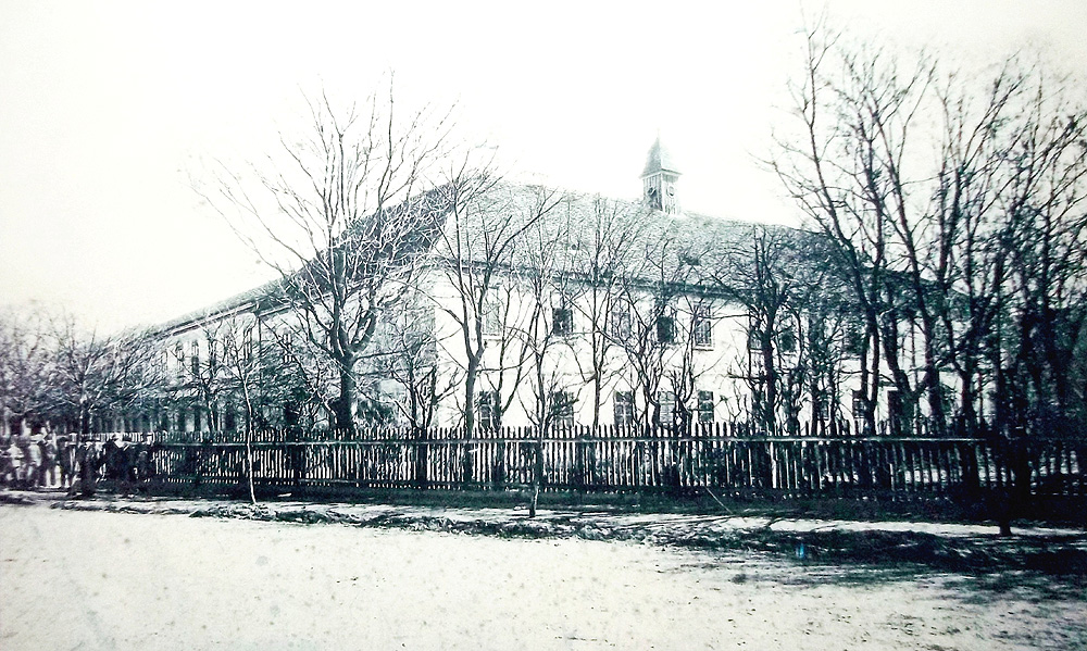 „Intézetünk, oly szomorú, elhagyatott állapotban van, hogy valóságos romnak mondható. Nincs azon egyetlen ajtó, vagy ablak sem használható állapotban; két kályhát nyílt térről kellvén fűteni, valóságos tűzfészeknek mondhatni. Nagyobb esők alkalmával a víz az ajtón és a tetőn egyaránt behatol a tantermekbe, melyeknek oldalfalain a meztelen téglák szemlélhetők. Nincs egy jóravaló pad, melyen a tanuló feladványait végezhetné; mivel a török háborúk alkalmával a szünidők alatt foglyok számára foglaltattak le az intézet helyiségei s a padokat szabad ég alá szórták ki, összetöredeztek s a nyirok áthatván, korhadásnak indultak. A folyosó nyílt s félig rom, talaja a hiányos téglaburkolat miatt gödrös s esős időben rajta tócsák képződnek."