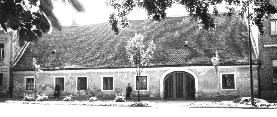 A tér keleti oldalának közepe 1953-ban: balra a 16. és 17. számú (dupla), jobbra a 19. számú ház