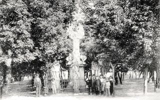 (Háttérben a Szentháromság-szobor hátsó oldala.)
