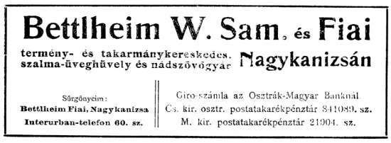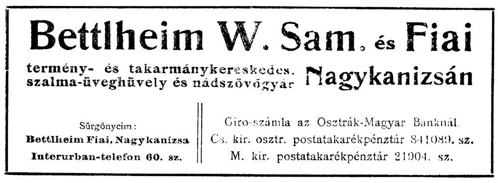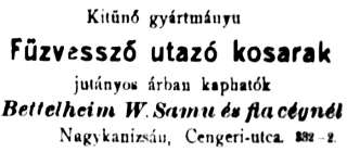 •1886-ban e helyre egy rongyraktár létesítését engedélyeztette Bettlheim W. Samu.