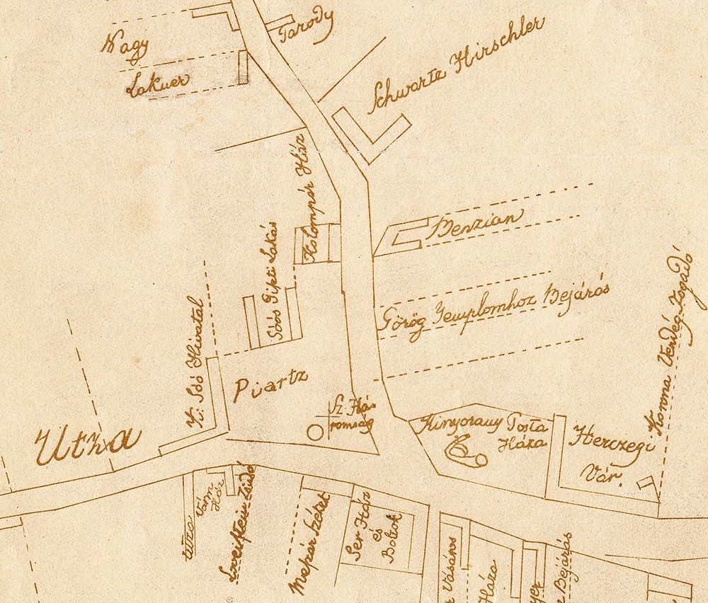 •Az uradalomtól 1901-ben megvásárolt háztömböt a város 1913-ban bontatta le.