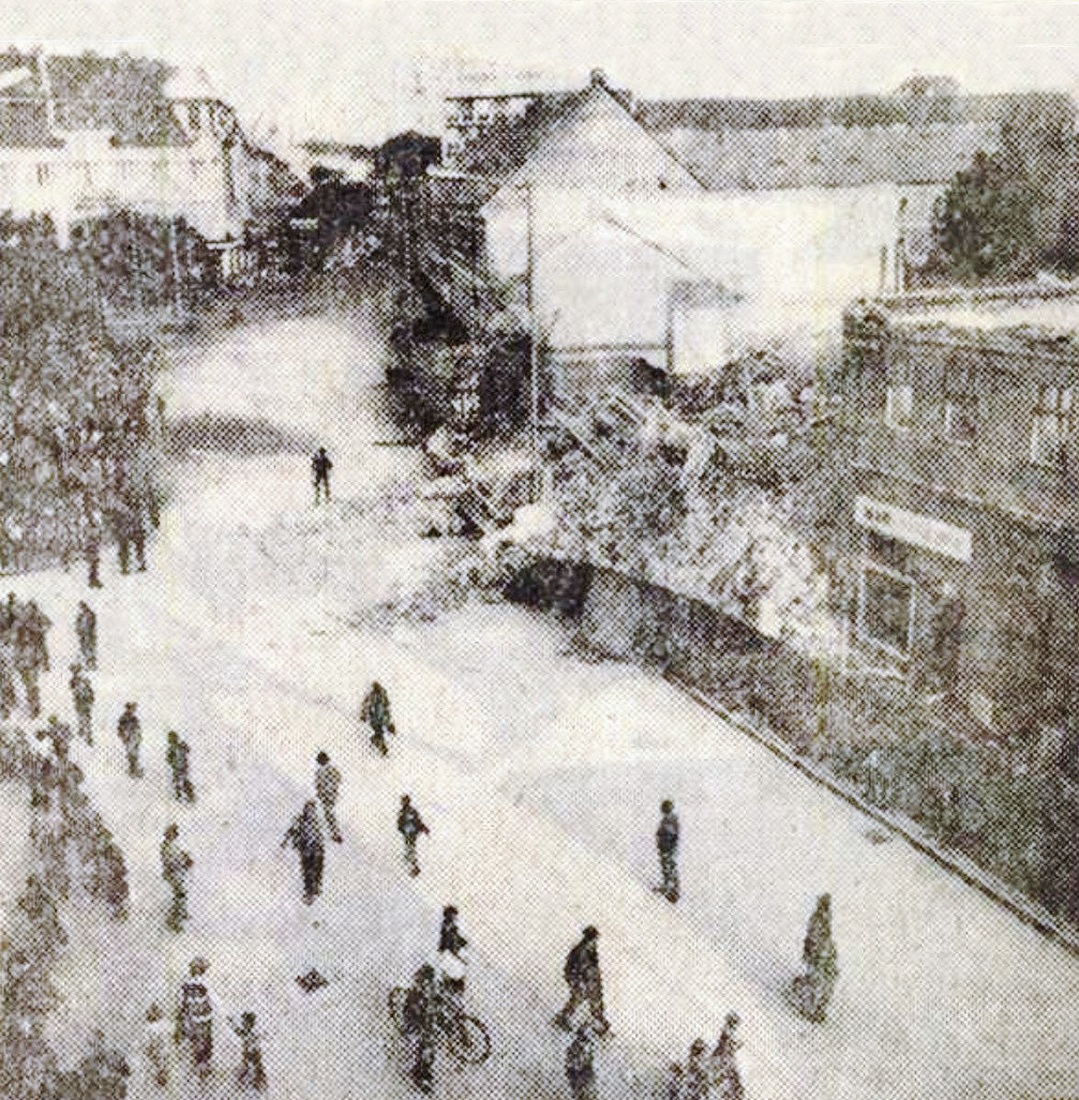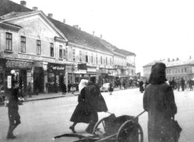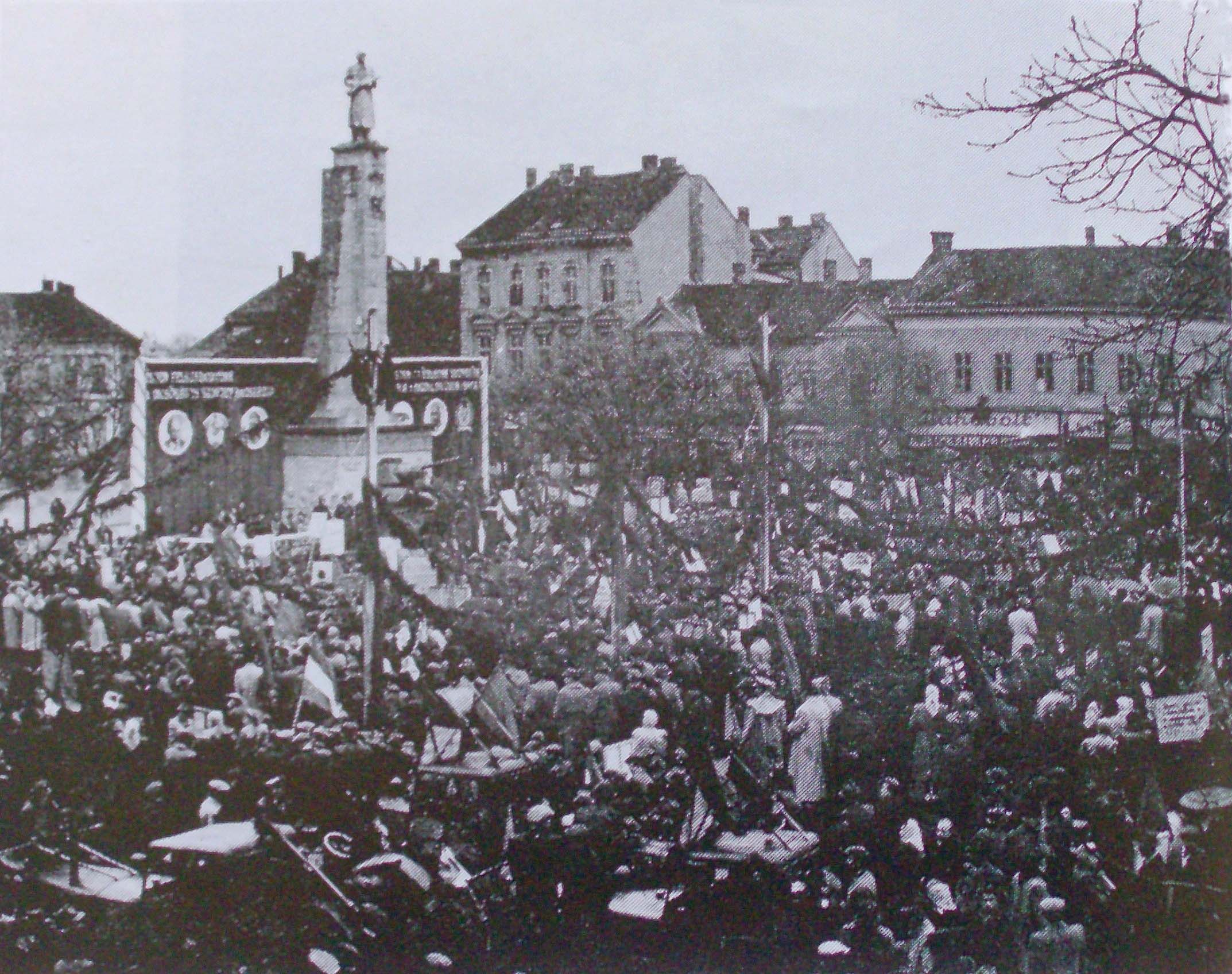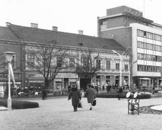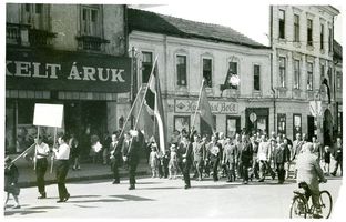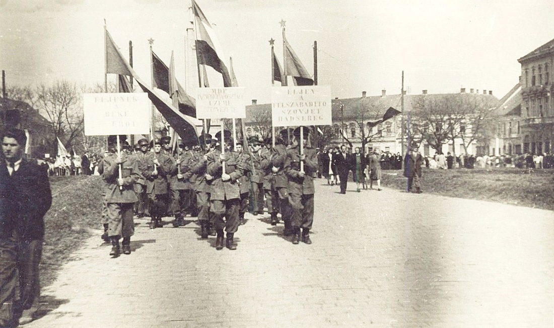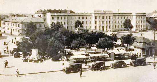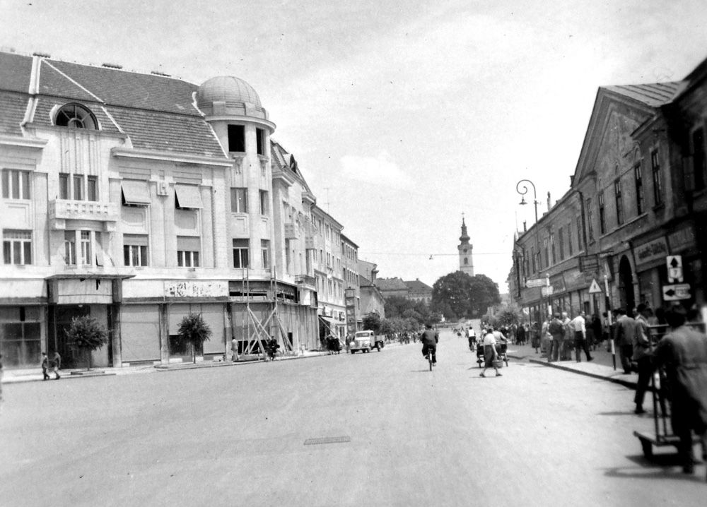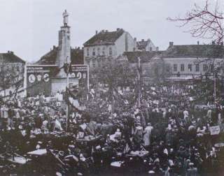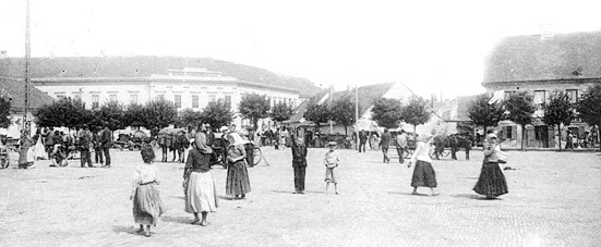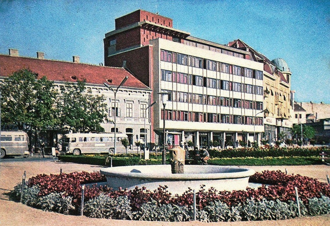 •Mint a következő képeken látható, az 1945-ben épített szovjet emlékmű teljesen megváltoztatta a tér funkcióját. A városi piacnak költöznie kellett, 1947-ben már a Zárda utcában találta meg az eladni vagy venni szándékozó.