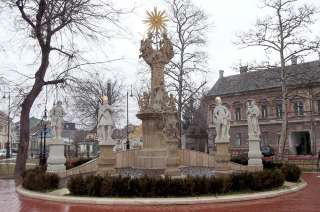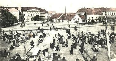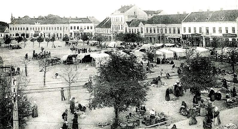 •A kilencven évnyi török megszállást követően épülni kezdő – végeredményben új – városnak e helyen alakult ki piactere. Az itt találkozó országutak révén nem csupán a helyiek napi bevásárlásainak adott helyet délelőttönként, hanem a heti- és országos vásároknak is. (Utóbbiak persze gyorsan kinőtték a teret és terjeszkedni kezdtek a Fő úton.)