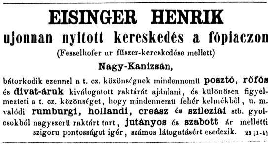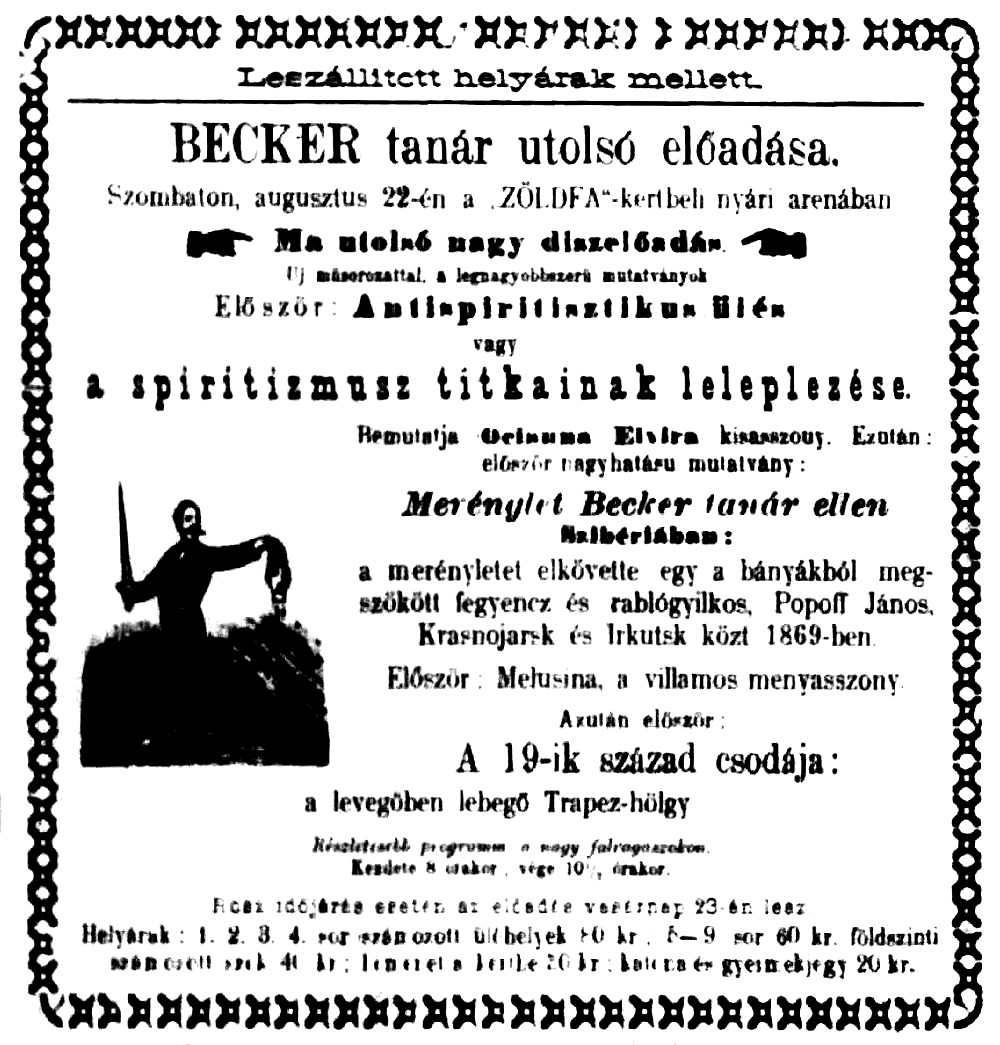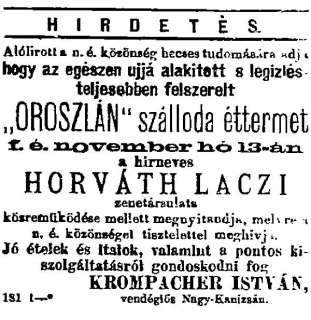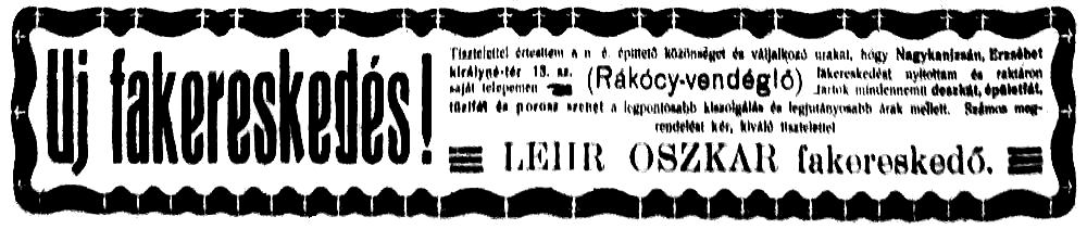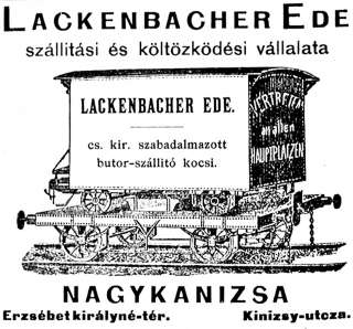 •Ugyancsak itt találták megrendelői Lackenbacher Ede szállítási vállalkozót, aki haláláig, 1921-ig (hetvenegyedik évében járt akkor) folytatta e tevékenységét.