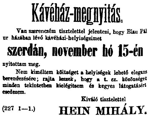 1910-ben Központi Kávéházi Asztaltársaság is itt jött létrejött.