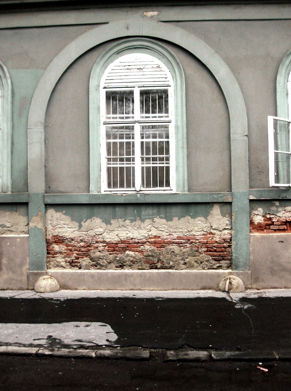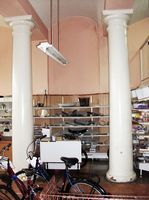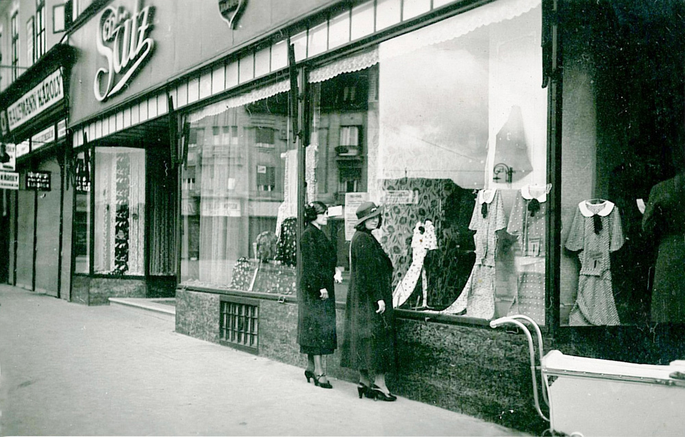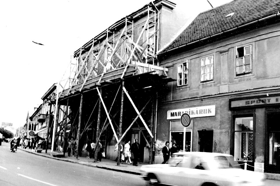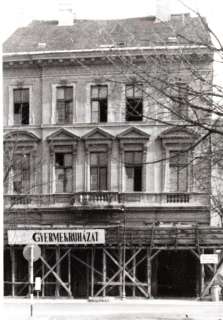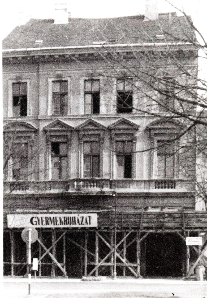 (Ekkor távolították el a földszinti rész oszlopairól a fekete márványból készített burkolatot és a kirakatok görredőnyeit.)