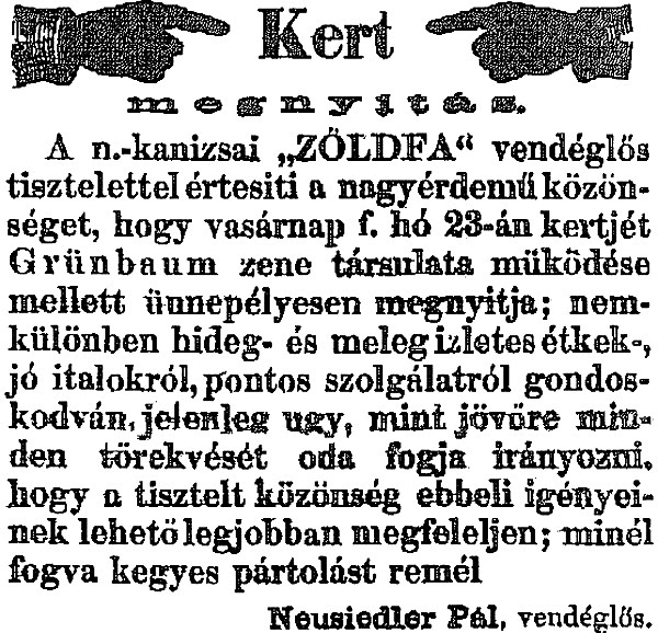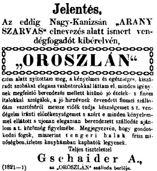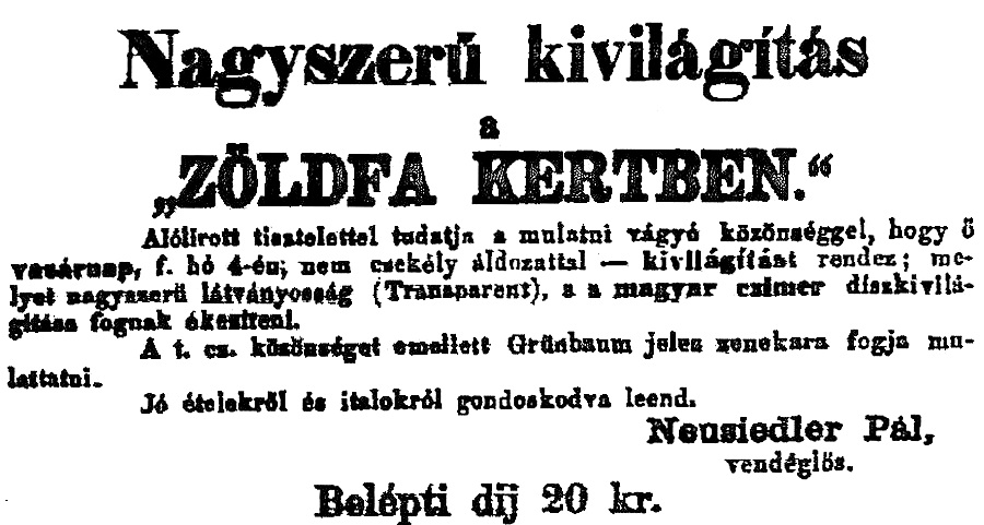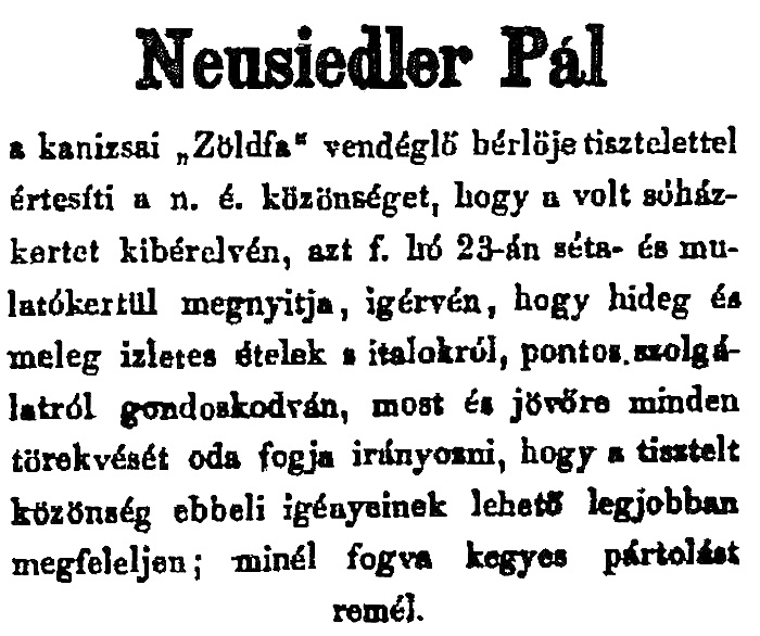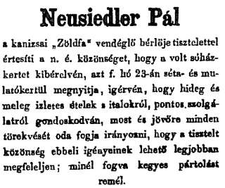 A harmadik ház tulajdonosa 1867-ig Szép Károly volt. Halála után Neusiedler Pál, a „Zöldfa” bérlője vette meg. Gőzfürdőt akart ott létesíteni.