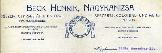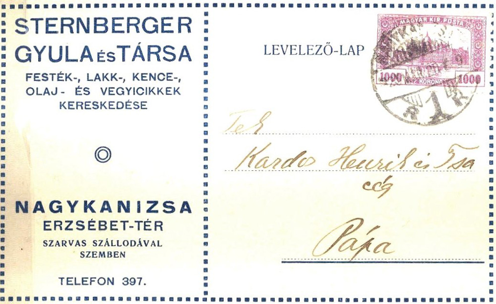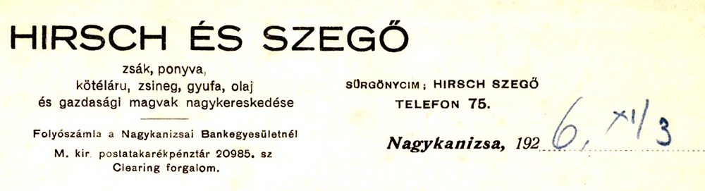 A cég levélpapírjának részlete 1927-ből
