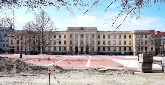 A változtatás tehát indokolt volt, bár az új építmény elég szerencsétlen módon kettévágta a teret. Menti a furcsa megoldást, hogy a pavilon mögötti területet a város majdani állandó színházának szánták.