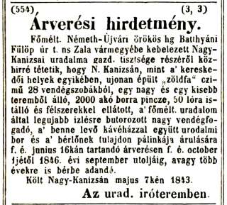 •Az ingatlan nem maradt az uradalom tulajdonában. A kiegyezés előtt özvegy Domaniczky Ferencné (Hochleitner Terézia) birtokolta, aki 1866-ban, élete hetvenötödik évében meghalt. (Férje, Domaniczky Ferenc alszolgabíró 1787-ben született.)