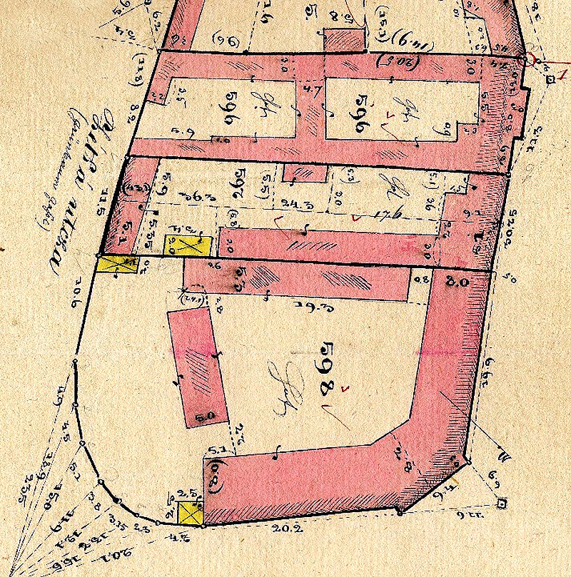 Egyik a tömb északi fele volt (Thenn-ház), másodikon a déli oldal és a nyugati oldal déli felének épületei voltak (ezt nevezték Spánier-háznak). A harmadikon állt a keleti oldal közepén lévő ház.