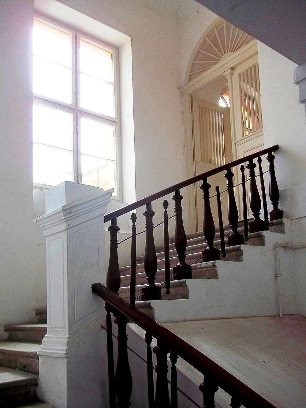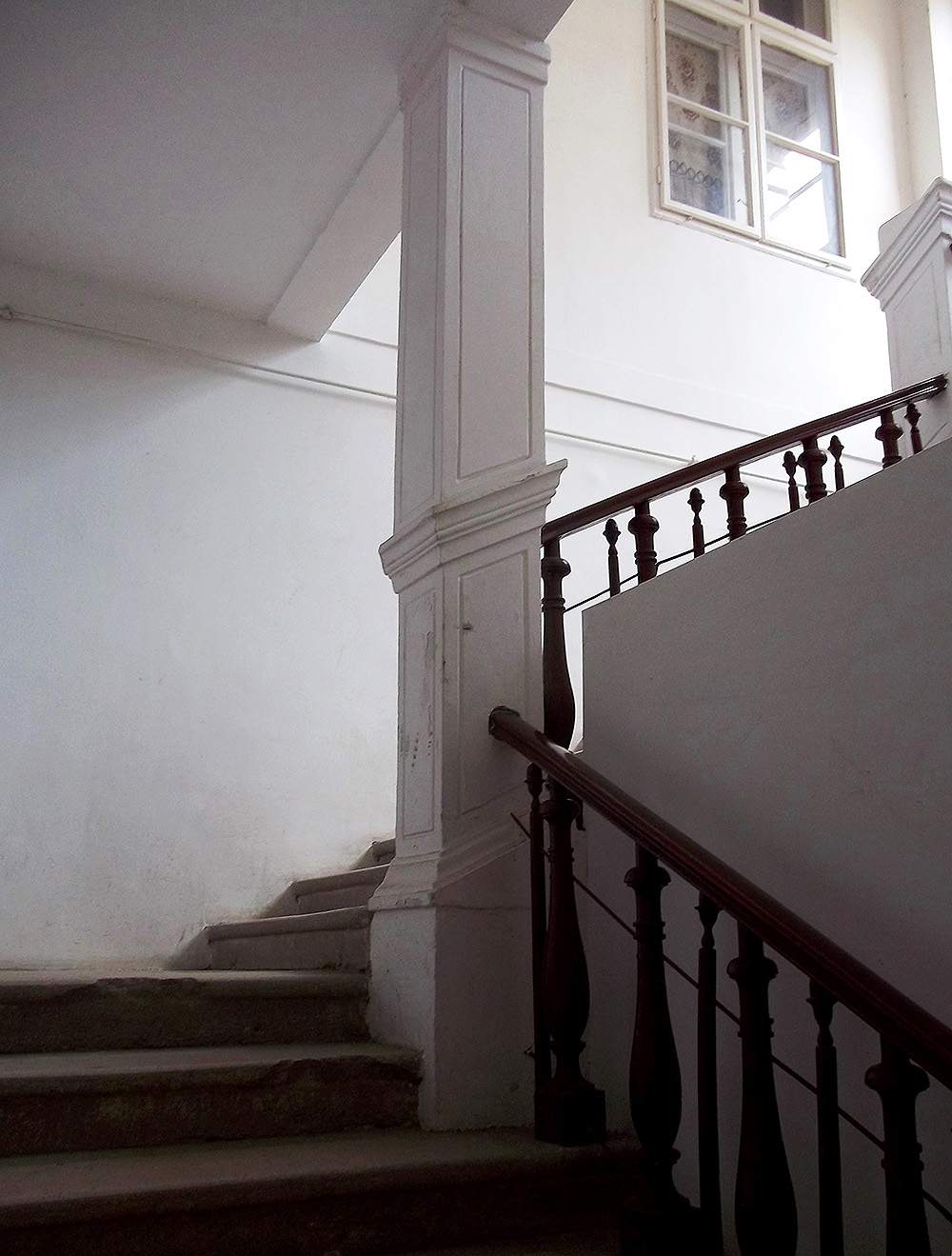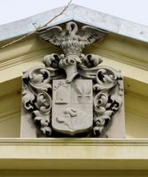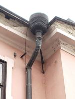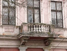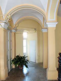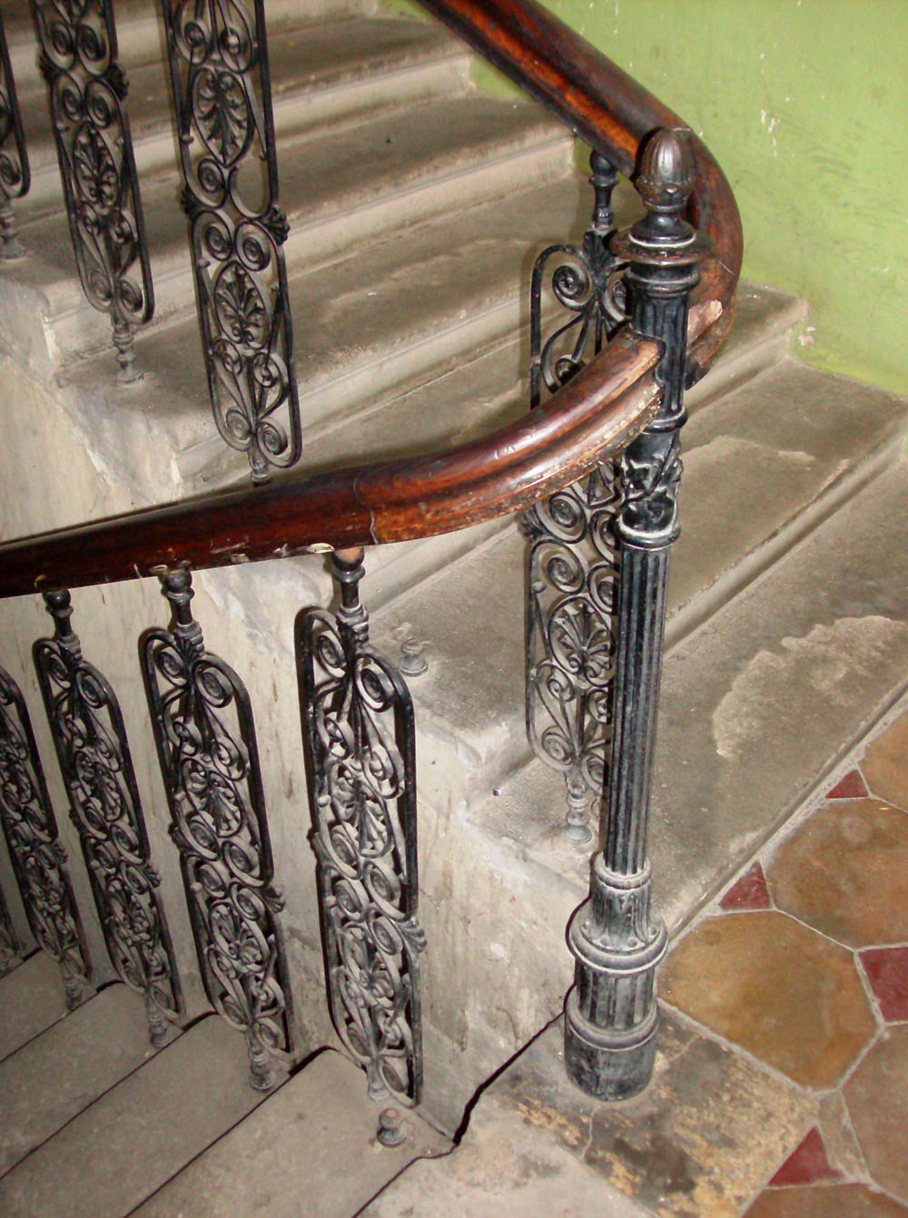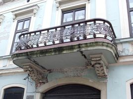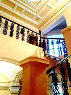 •Az épület homlokzatán a földszinti 16 oszlopot fekete márvánnyal burkolták. Hét erkély került rá, a tetőn három kupolát alakítottak ki, amelyekből kettő csúcsban, a sarkon lévő pedig földgömbben végződött.