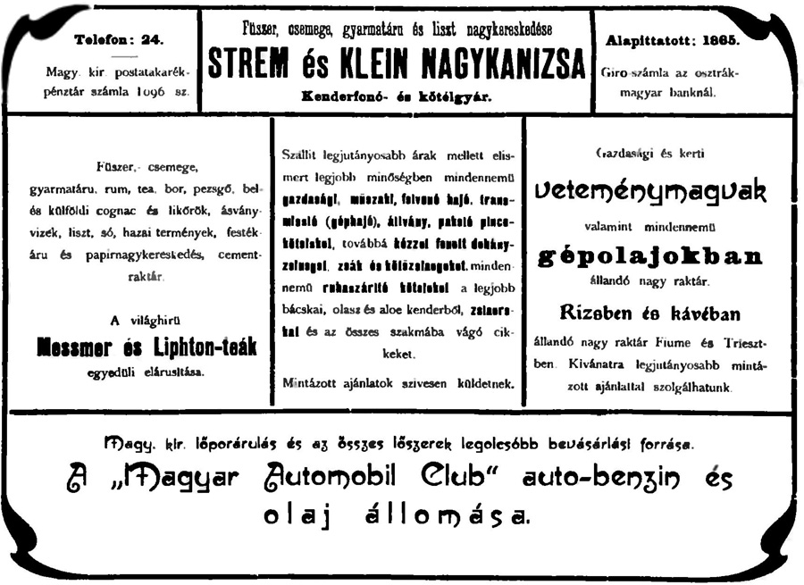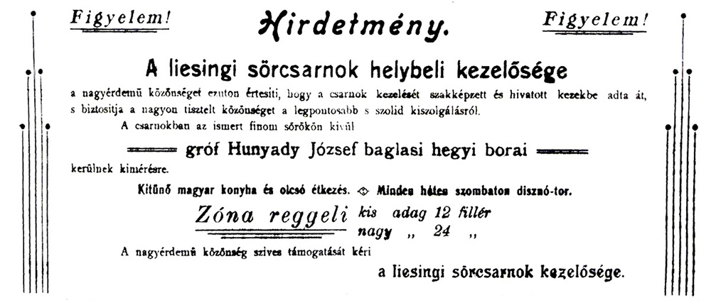 Az 1903-as hirdetés mellett egy képeslap Kiss László gyűjteményéből