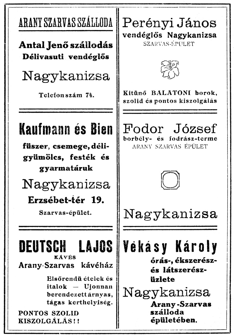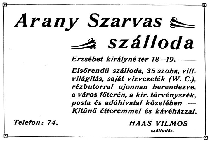 A Szarvas szállóval szemben volt például Simkovits és Ujlaki lakatosok műhelye.