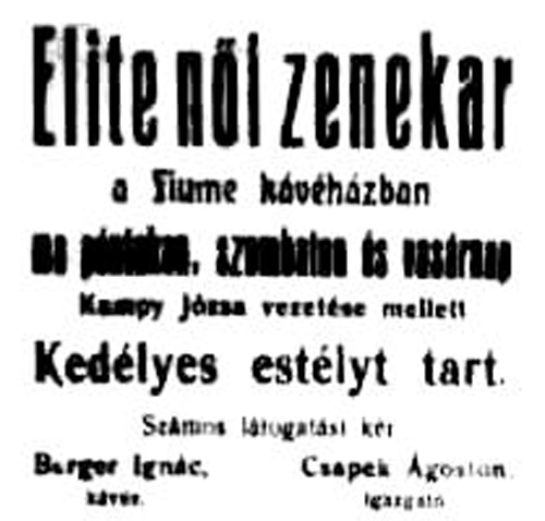 •A kávéházhoz az Erzsébet téri oldalon csatlakozott a női szalon, ahol a férfiak nem gyújthattak rá.