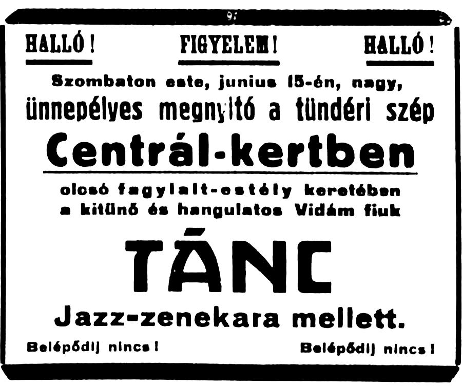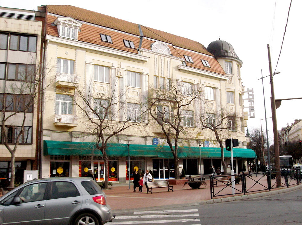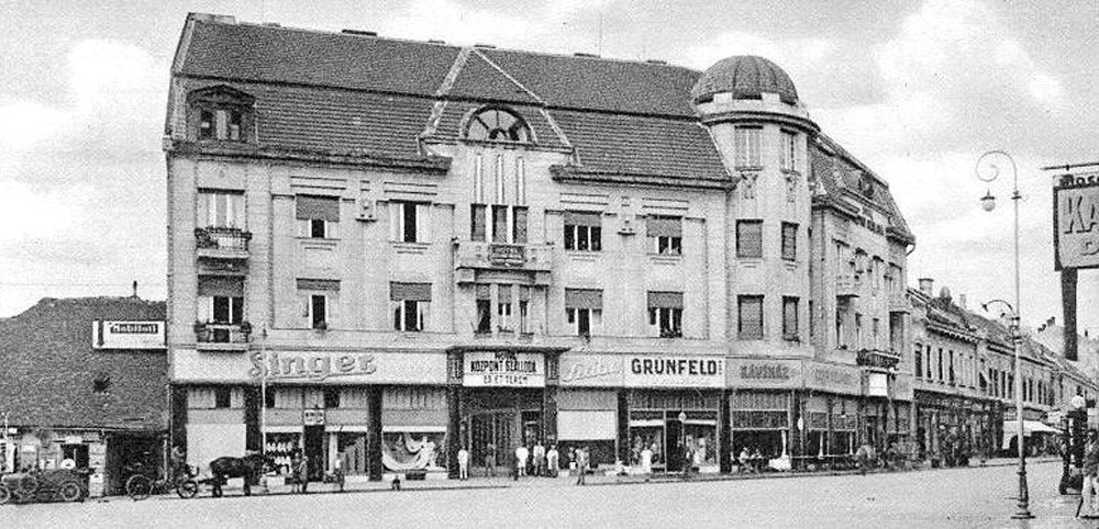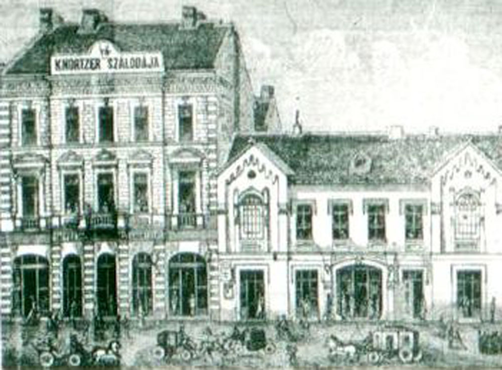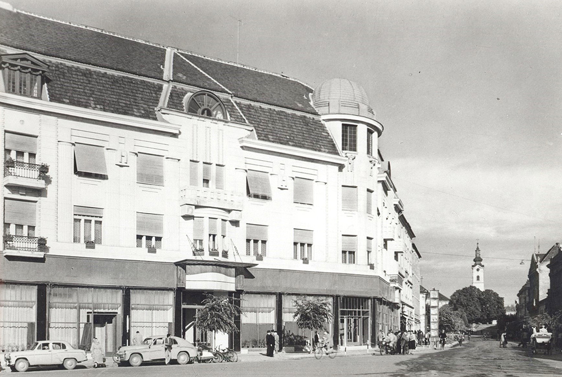 •Az 1911-ben megvásárolt bérházak helyére Zerkowitz Lajos bornagykereskedő vezetésével egy konzorcium 1912–13-ban építtette fel ifj. Gyenes Lajos és Vajda Andor budapesti építészek tervei alapján a Központ (Centrál) szállót, kávéházat, éttermet és bérpalotát. Az építkezés kivitelezője Müller Ede cége volt Szombathelyről. A Gyenes és Vajda tervezte bútorzatot Lengyel Lőrinc szegedi üzeme készítette.