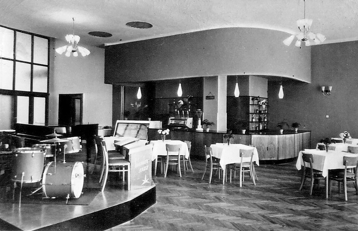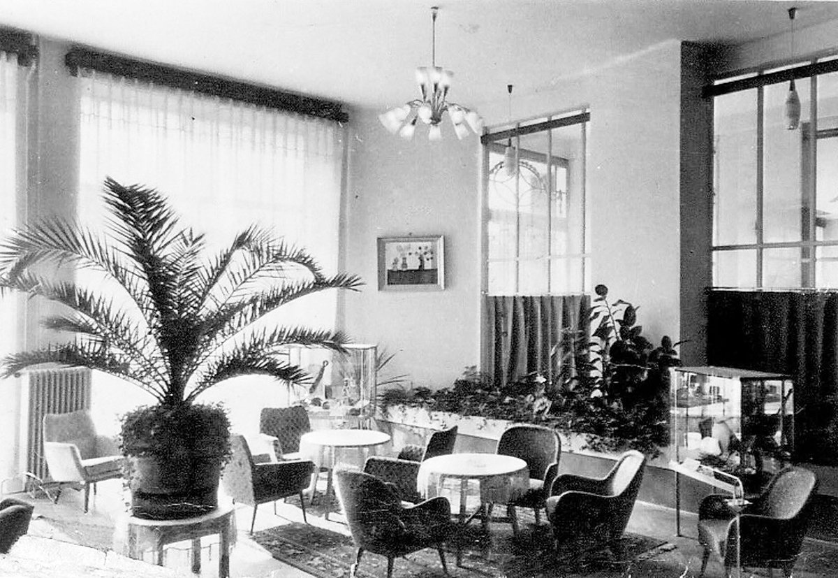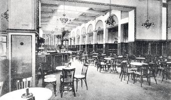 •1926-ban a kávéház hátsó részét leválasztva alakították ki az új éttermet. Berendezését Attenberger müncheni iparművész tervezte.