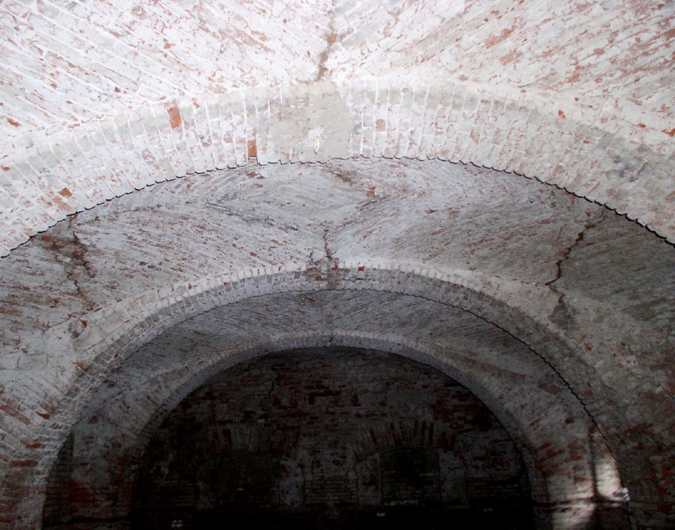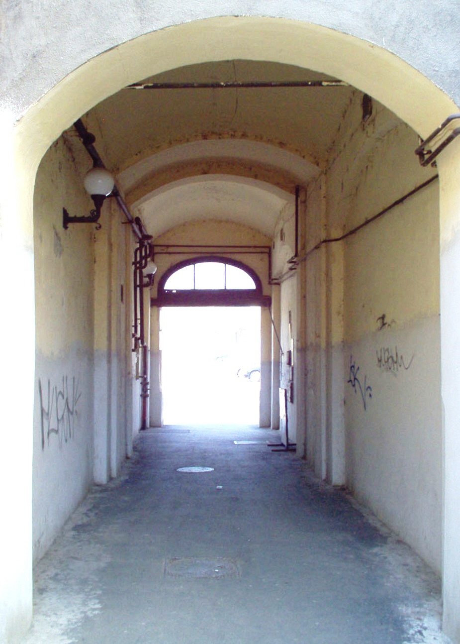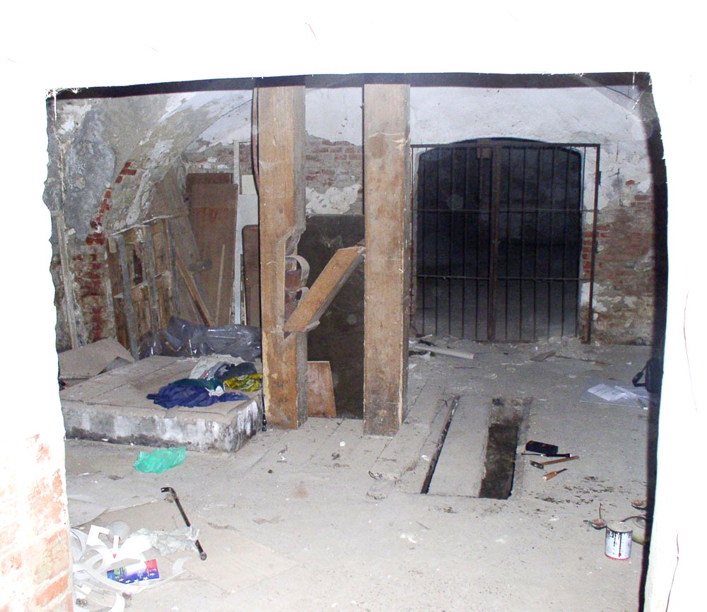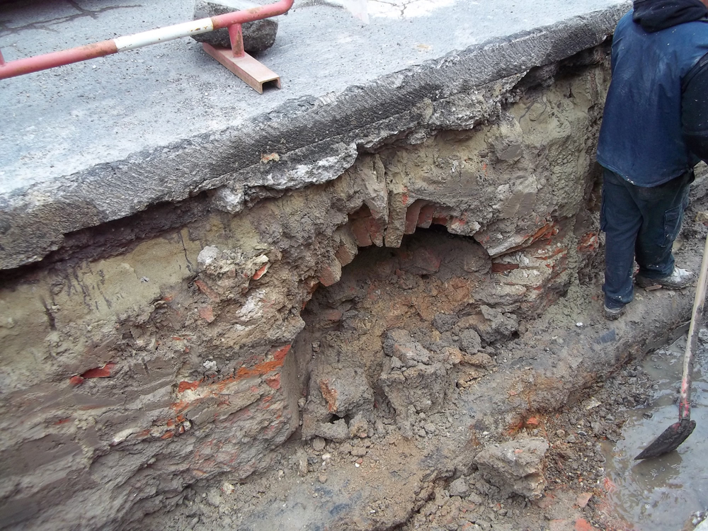A „Centrál” épülete felől a Vasemberház felé vezető boltozatos csatorna maradványa