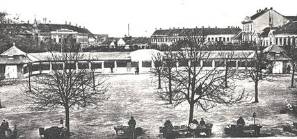 •1924-ben a tér déli felének közepén, kelet-nyugat irányban, Szeghalmy Bálint városi mérnök terve szerint felépült a 23 fülkéből álló „hús-pavilon”.