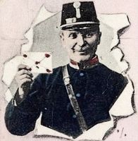 Rendőr (kihúzza rozsdás fringiáját): Levágom, ha még egyszer a flaszterra köp!... Nem megmondtam, hogy az „egészségtelen”? (Véletlenül ő is elköpi magát.) Pardon, pardon… „Nekem” szabad…
