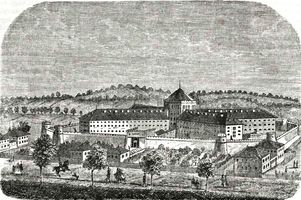 (Philipp műhelye a keleti oldal középső épületében működött.)