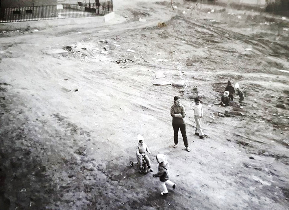 (A déli oldal emeletes épületei már állnak, környékük még rendezetlen. A kép bal felső sarkában az új gázfogadó.)
