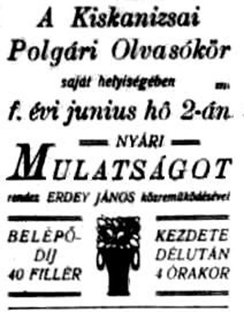 Az egyesület elnevezését illetően bizonytalan vagyok, mert valamivel később a helyi lap kiskanizsai ifjúsági egyesületként említette őket. Az sem látszik lehetetlennek, hogy a Katholikus Ifjúsági Egyesület megalakítása történt ekkor.