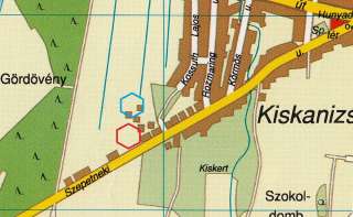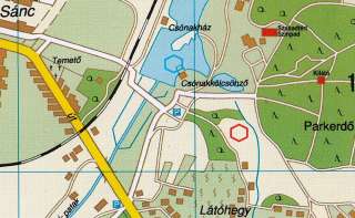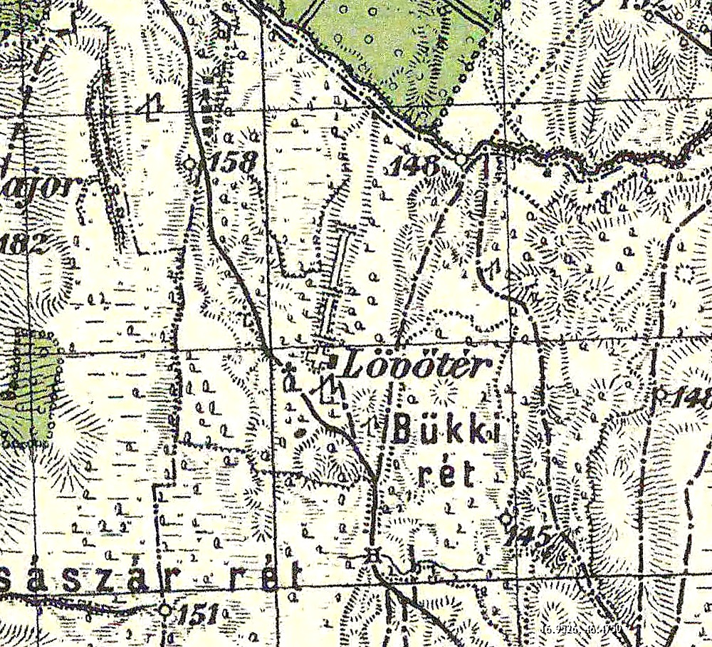 (Alul, nagyjából középen látjuk a Homokkomáromi utca folytatását (─ • ─ • ─ jelzéssel), amely aztán a lőtér két oldala felé elágazik. A nyugati út vezet Homokkomáromba.)