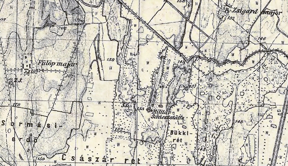 •A Homokkomáromba vezető út keleti oldalán találjuk a már felhagyott katonai lőteret. Létesítése időpontját nem ismerem. A második katonai felmérés térképe még nem jelzi, de a harmadiké már igen.