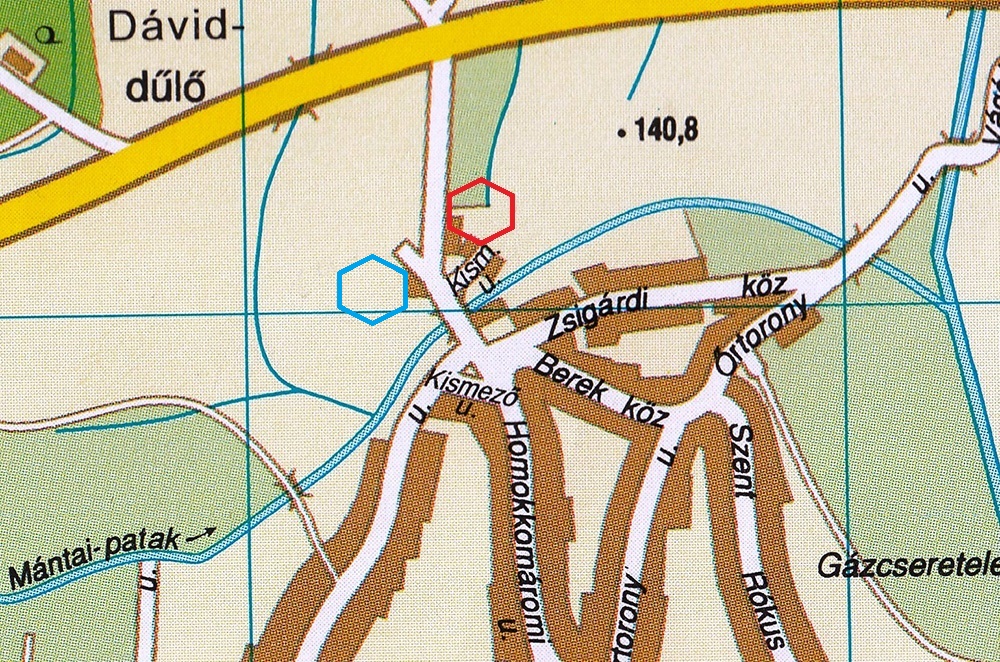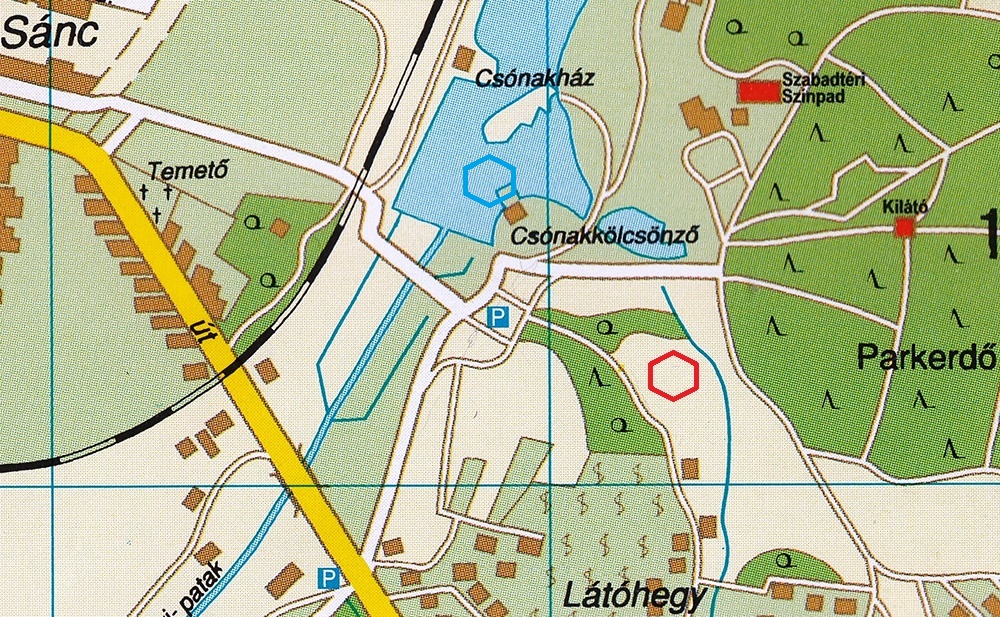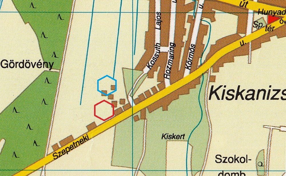 (Jobbra az alsó térkép piros hatszöge nincs a megfelelő helyen, ha esetében az adatközlő Csákányháza cigánytelepére gondolt. Ez, keleti irányban, nagyjából két kilométerre volt a megjelölt helytől.)