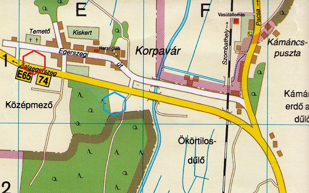 A piros hatszög jelzi az 1960-ban népesebb telep helyét
