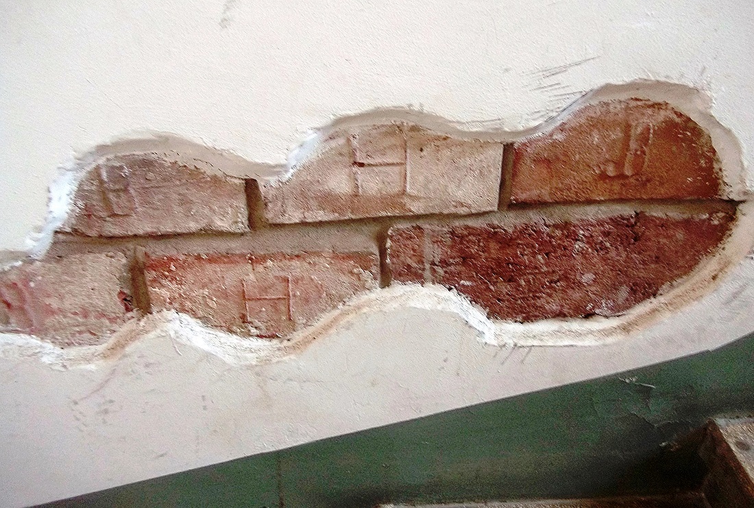 Haba-féle téglák (H) a Pollák-ház (Deák tér 10.) falában