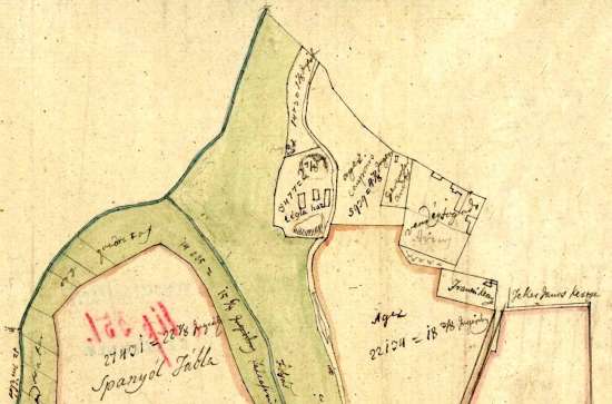 (Alul a major, felül az uradalmi téglavető. Középen a két ma is álló ház.)