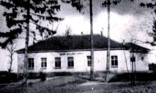 Bagolasánc iskolájává alakítása után (a felvétel az avatási ünnepség kapcsán készült) emléktábla is került a házra: