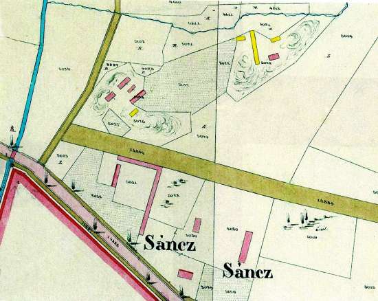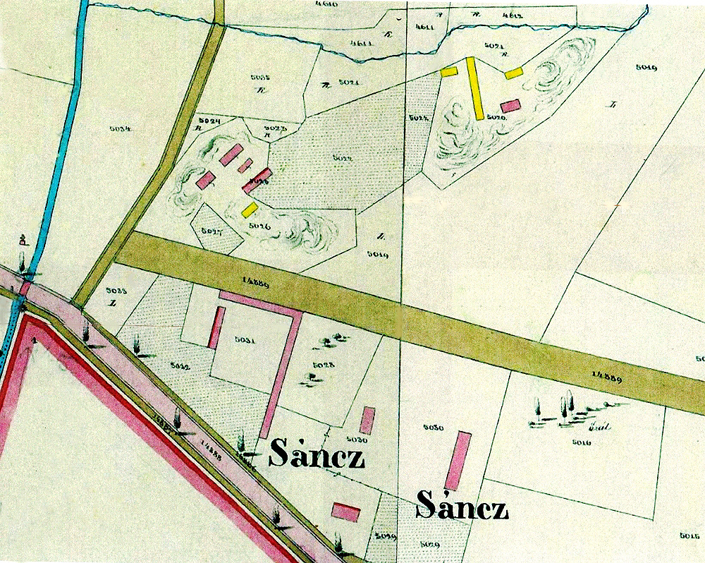 •A Batthyány (hercegi) uradalom sánci majorja (Felső-Sánc) terült el az út északi oldalán.