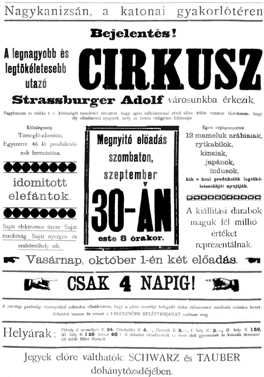 •1901-ben olyan cirkusz látogatott a városba, amely csak a Katonaréten fért el:
