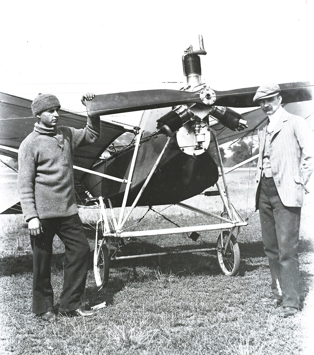 Anzani motor. Schvachulay gépébe beépítve. Jobba Schvachulay, balra Dobos 1912_sm.jpg)