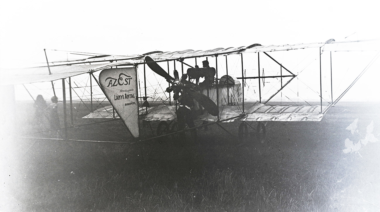 Lányi Antal (1886-1936) már túl volt első felszállásain. Gépét (Bleriot typ. XI.) sem maga barkácsolta, sőt azzal repülte át (elsőként) a Balatont.