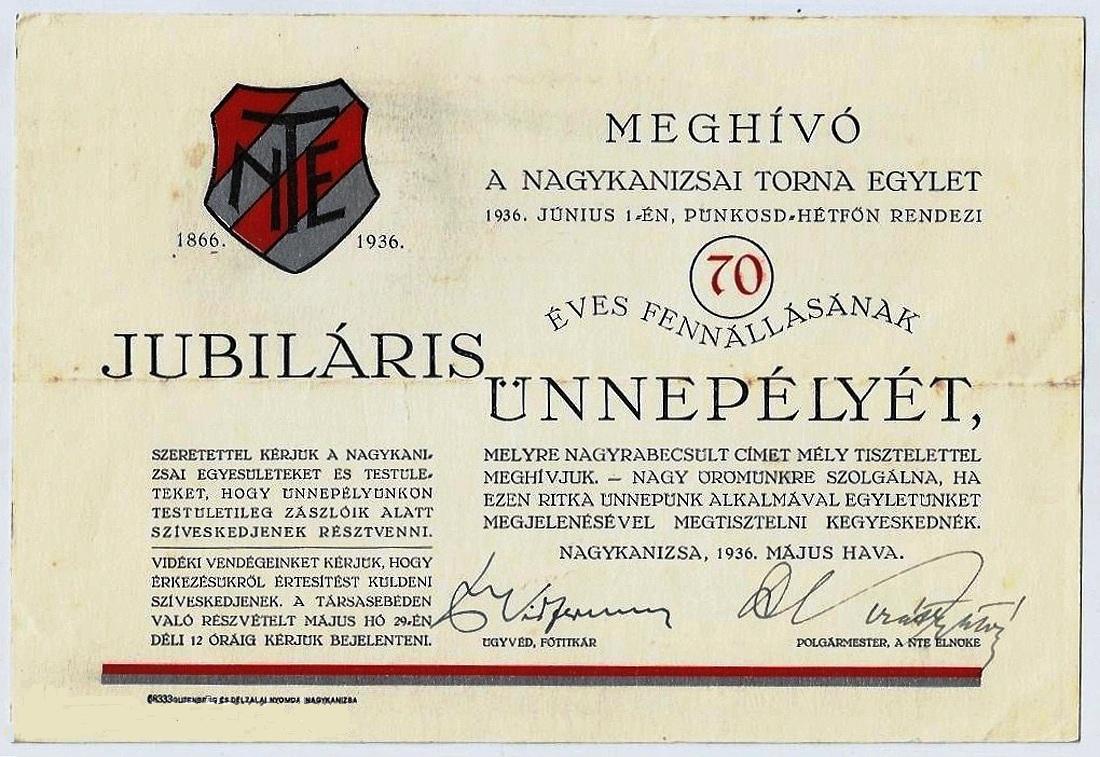 •Ide építette – 1920-ban, engedély nélkül – sportpályáját az 1866-ban alapított Nagykanizsai Torna Egylet. A munkákat Gerócs Jenő (1892-1982) ács vezette.