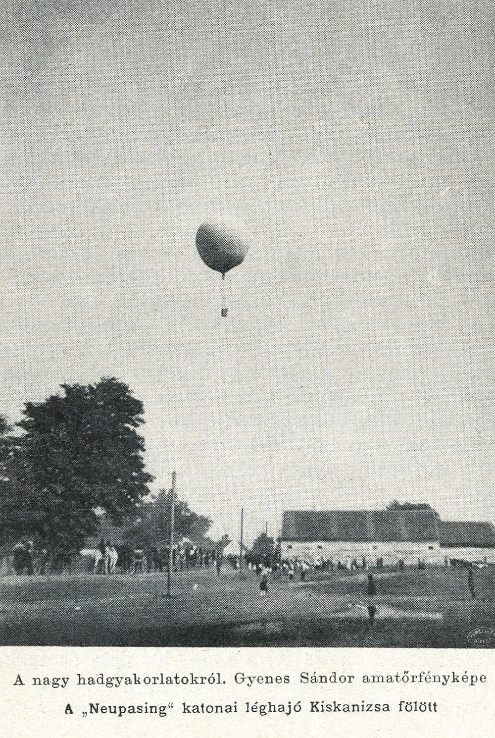 (A léghajó előkészítése a Katonaréten történhetett. A másik kép készítésekor a Hunyadi téren, kelet felé fordulva állt Gyenes.)