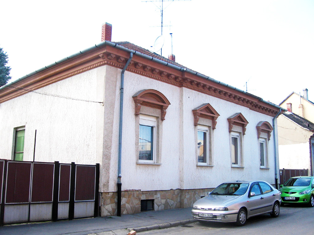 •Hosszú földszintes házát 1889-ben építtette Keller Mátyás (1855-1925), neves cipész. Sallér Lajos tervezte, kivitelezte.