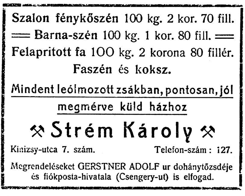 •A Strém Bernát és Fiai cég a Magyar utca 2. szám alatt működött. Csonttelepük az Erdész utcában volt.