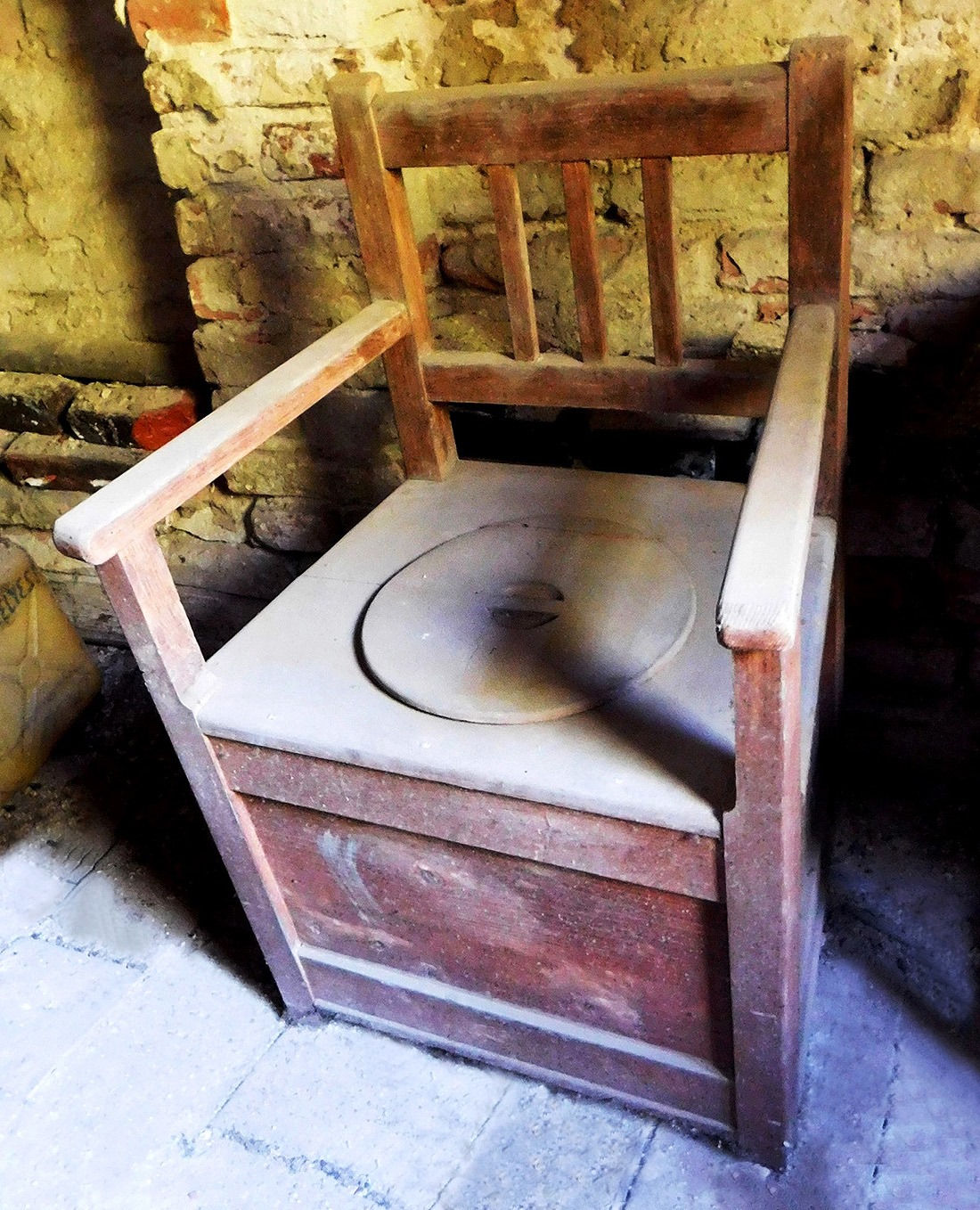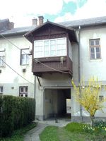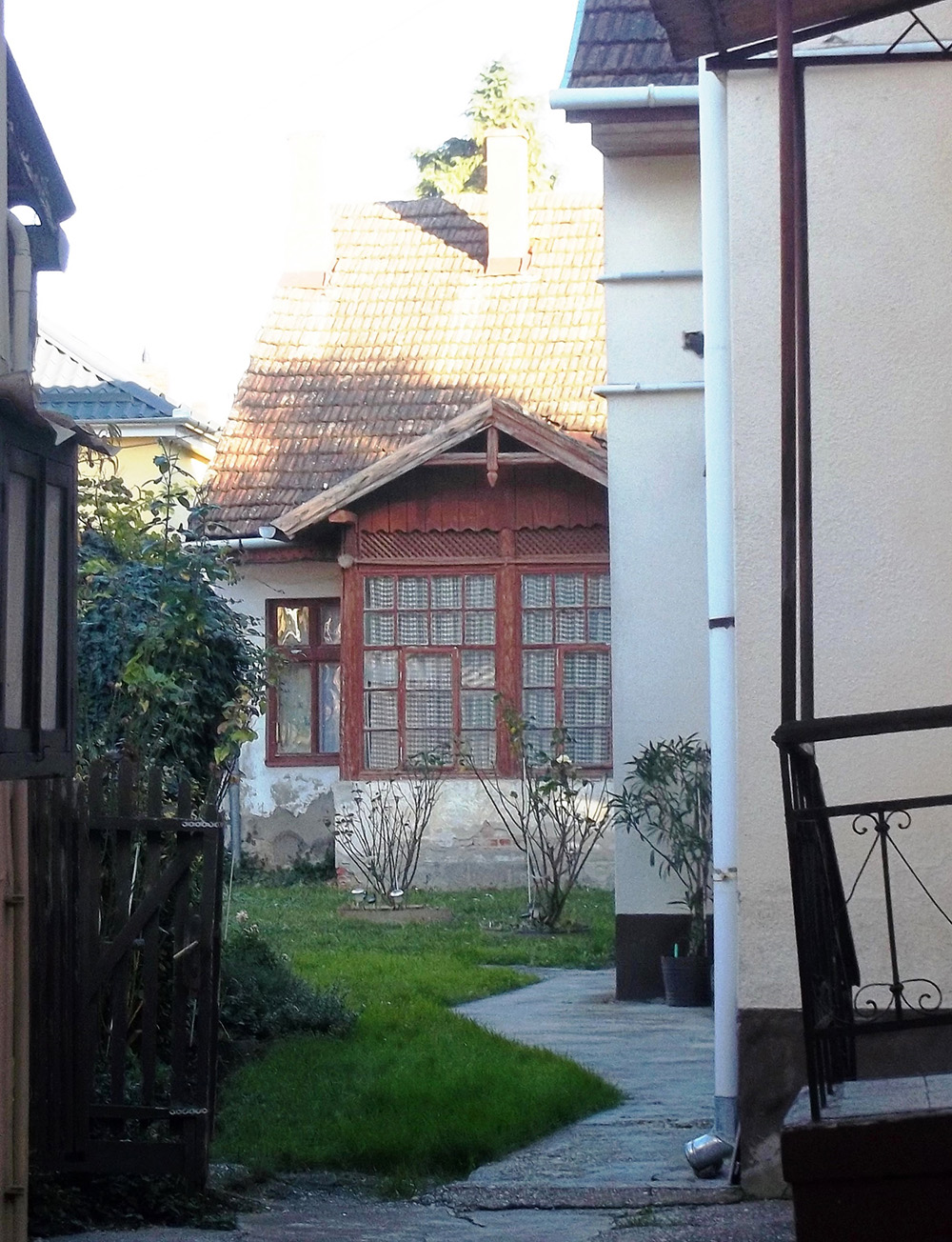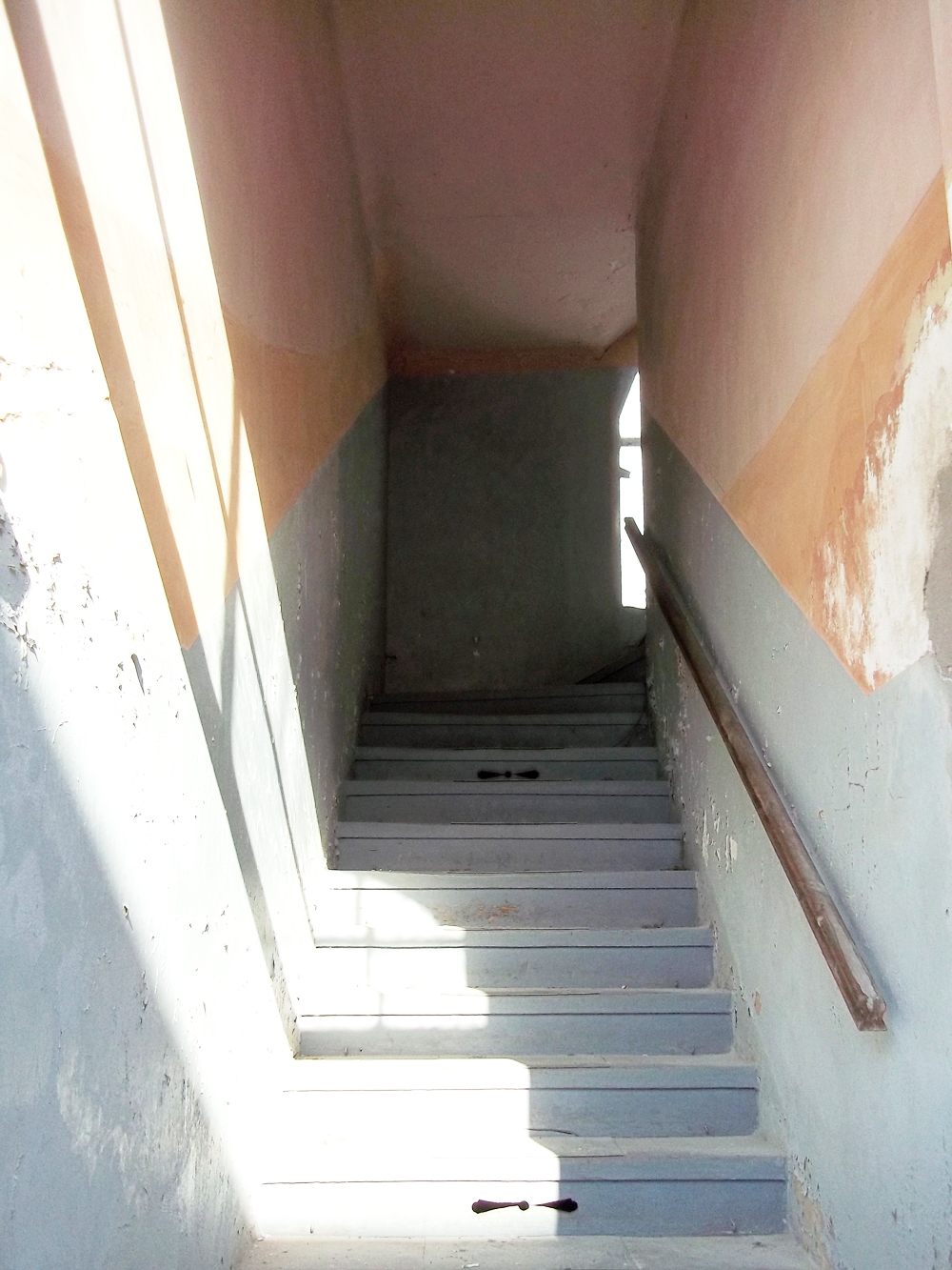 (A lépcsőház fából készített lépcsőfokaival, a függőfolyosó, a végén kialakított emeleti „pottyantós” illemhely. Utóbbi a 20. század közepén még általános megoldásnak számított a város emeletes házaiban is. A képen látható lehet fajtája utolsó példánya.)